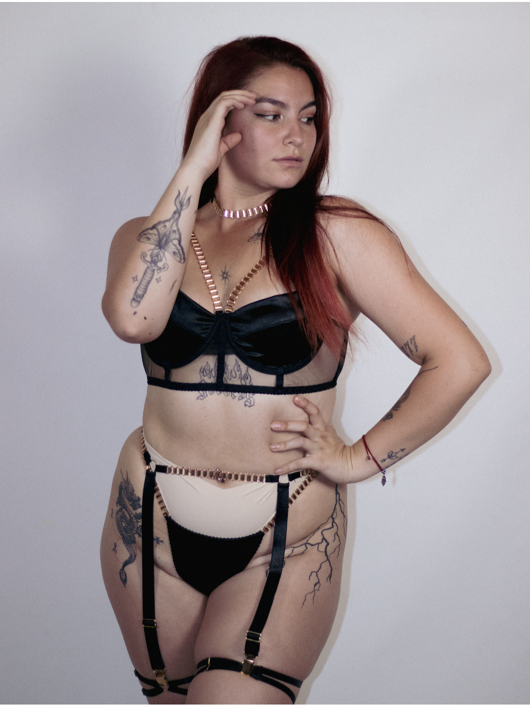 Incluye ligas y gargantilla