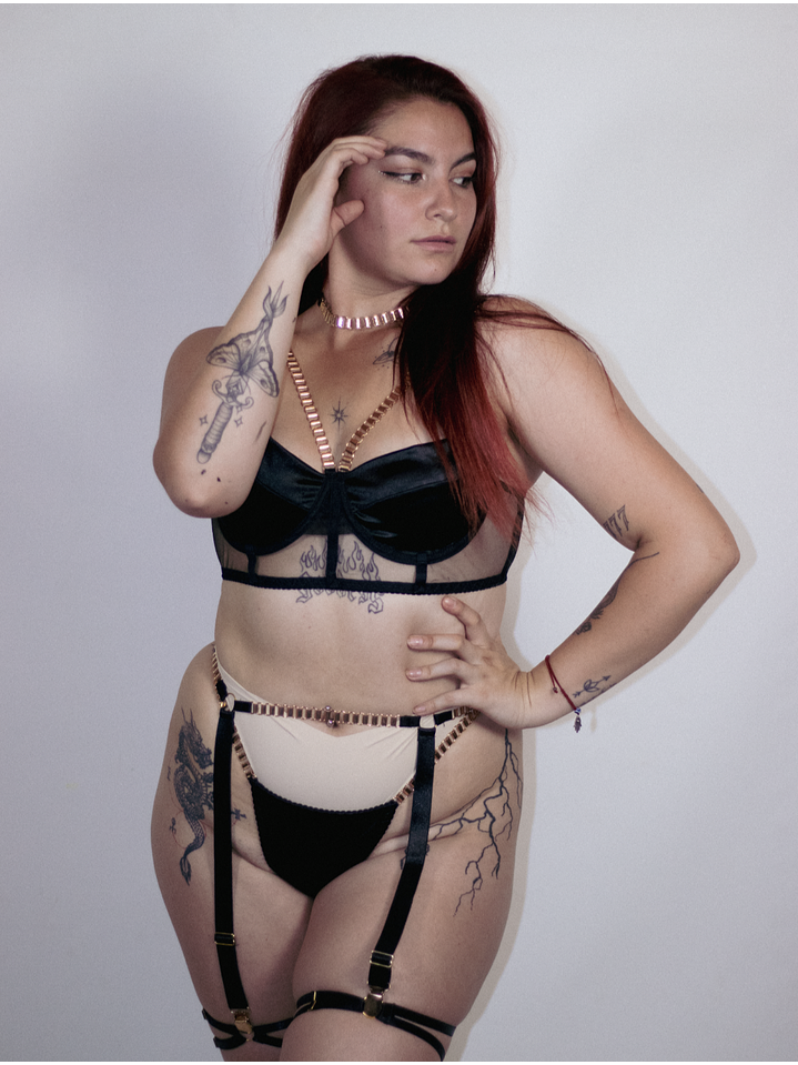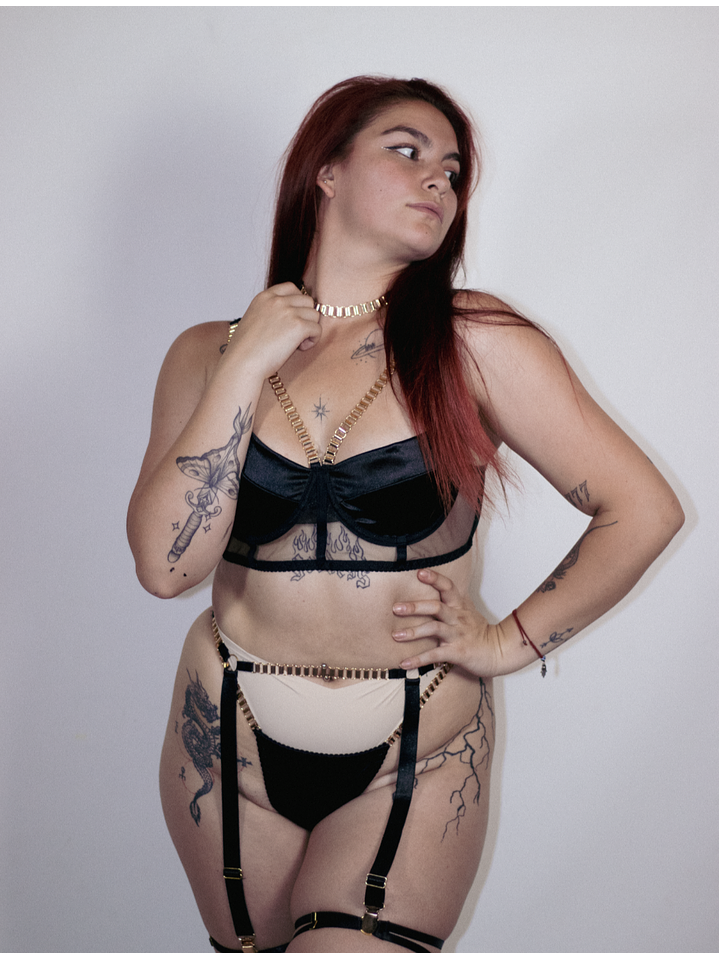 Conjunto Cadenas y Satín Negro