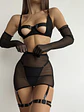 Incluye ligas, falda y guantes